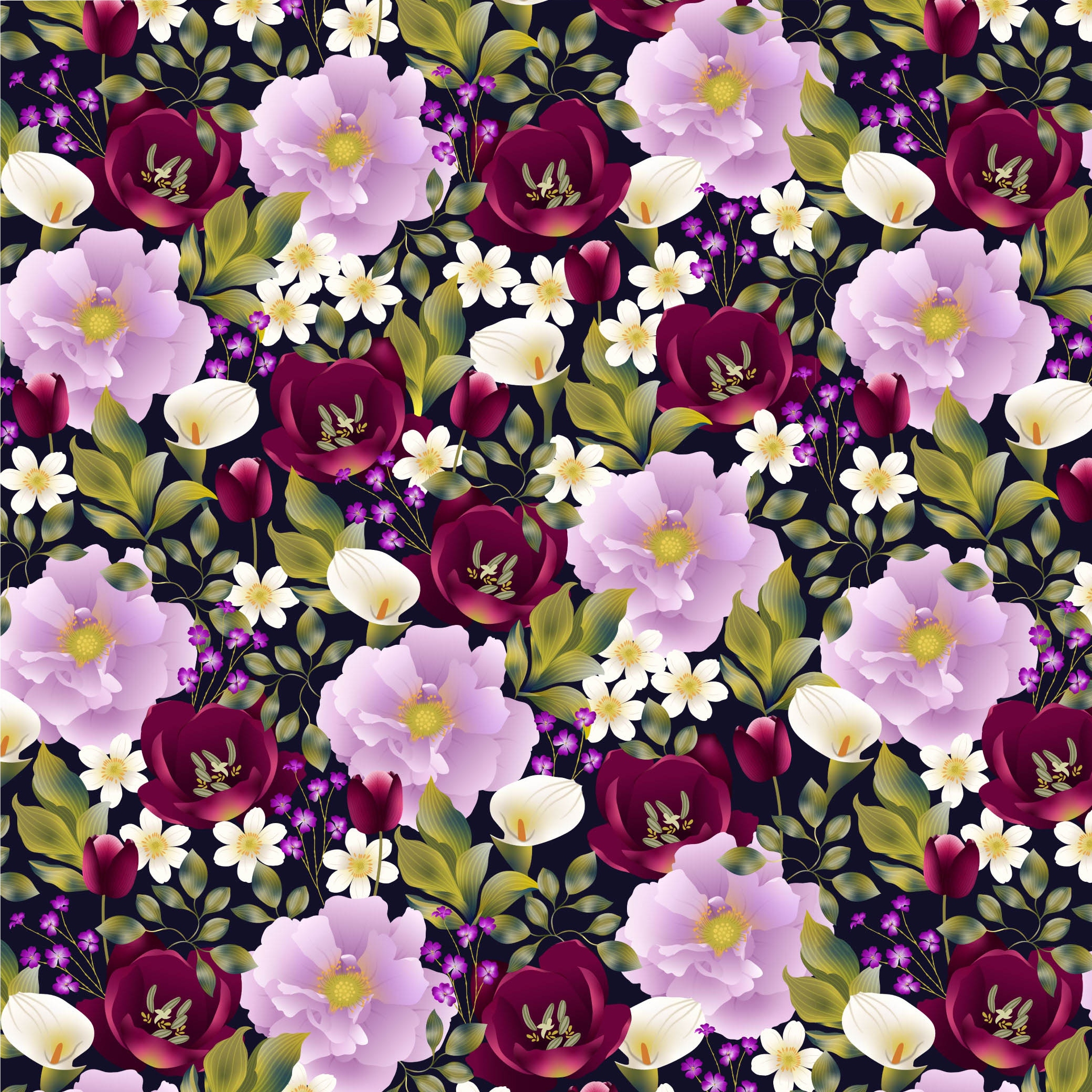 This beautiful set of five co-ordinating 100% cotton fat quarters from the Craft Cotton Company features detailed floral prints on shades of dark navy and deep red, creating striking designs. These are craft quality fabrics, suitable for quilting, patchwork and craft projects.