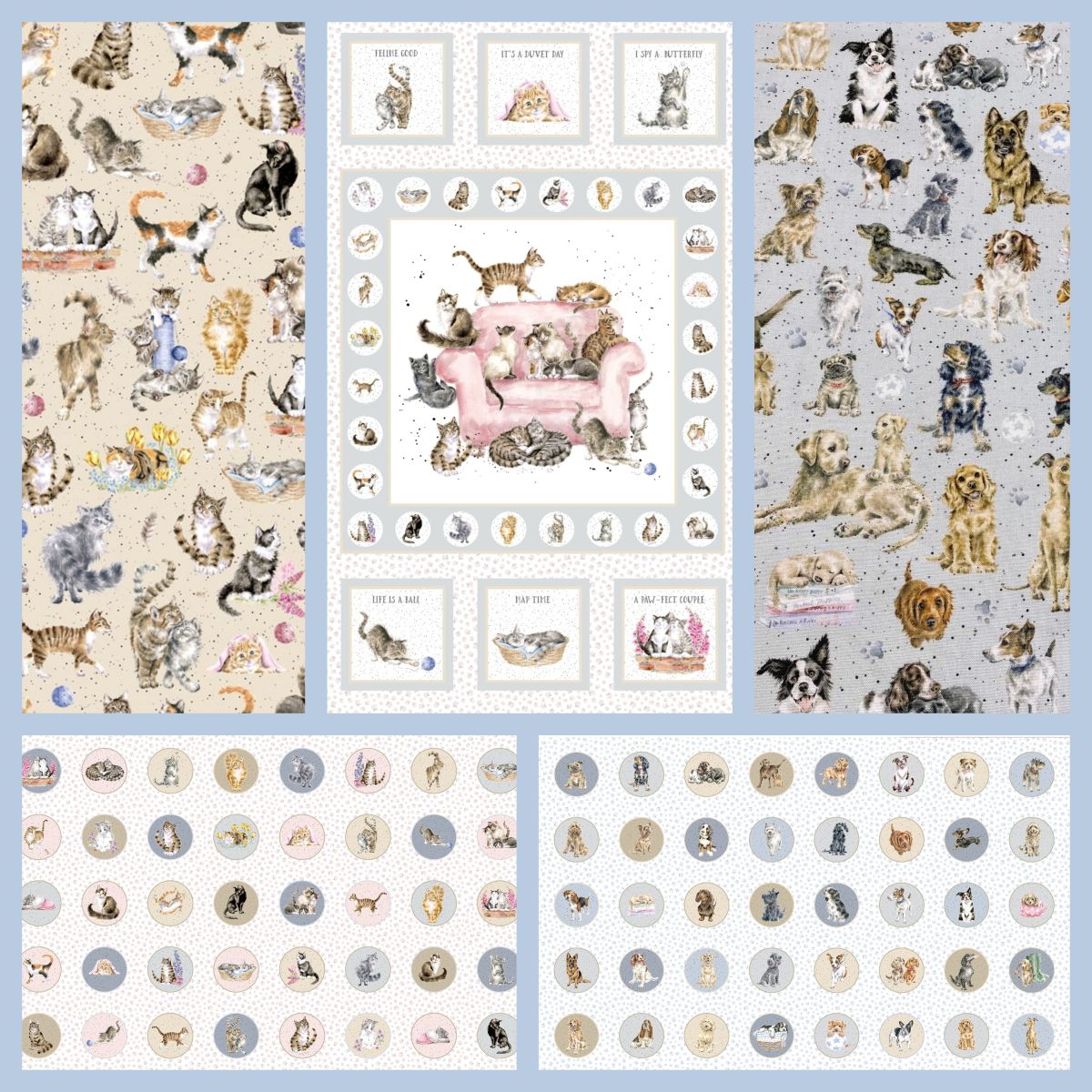 Whiskers and Paws is a beautiful collection of cat and dog fabrics by Hannah Dale of Wrendale Designs for Maywood Studio. There are three panels and two allover fabrics available, featuring adorable cats and dogs in Hannah’s trademark watercolour-effect designs. These are premium quality 100% cotton fabrics, perfect for quilting, wall hangings, patchwork, dressmaking and craft projects.